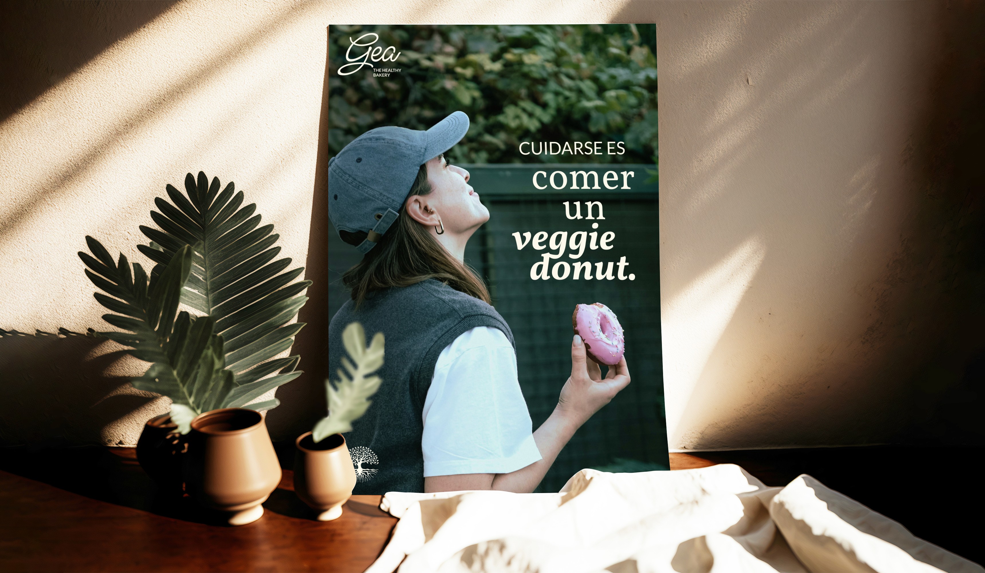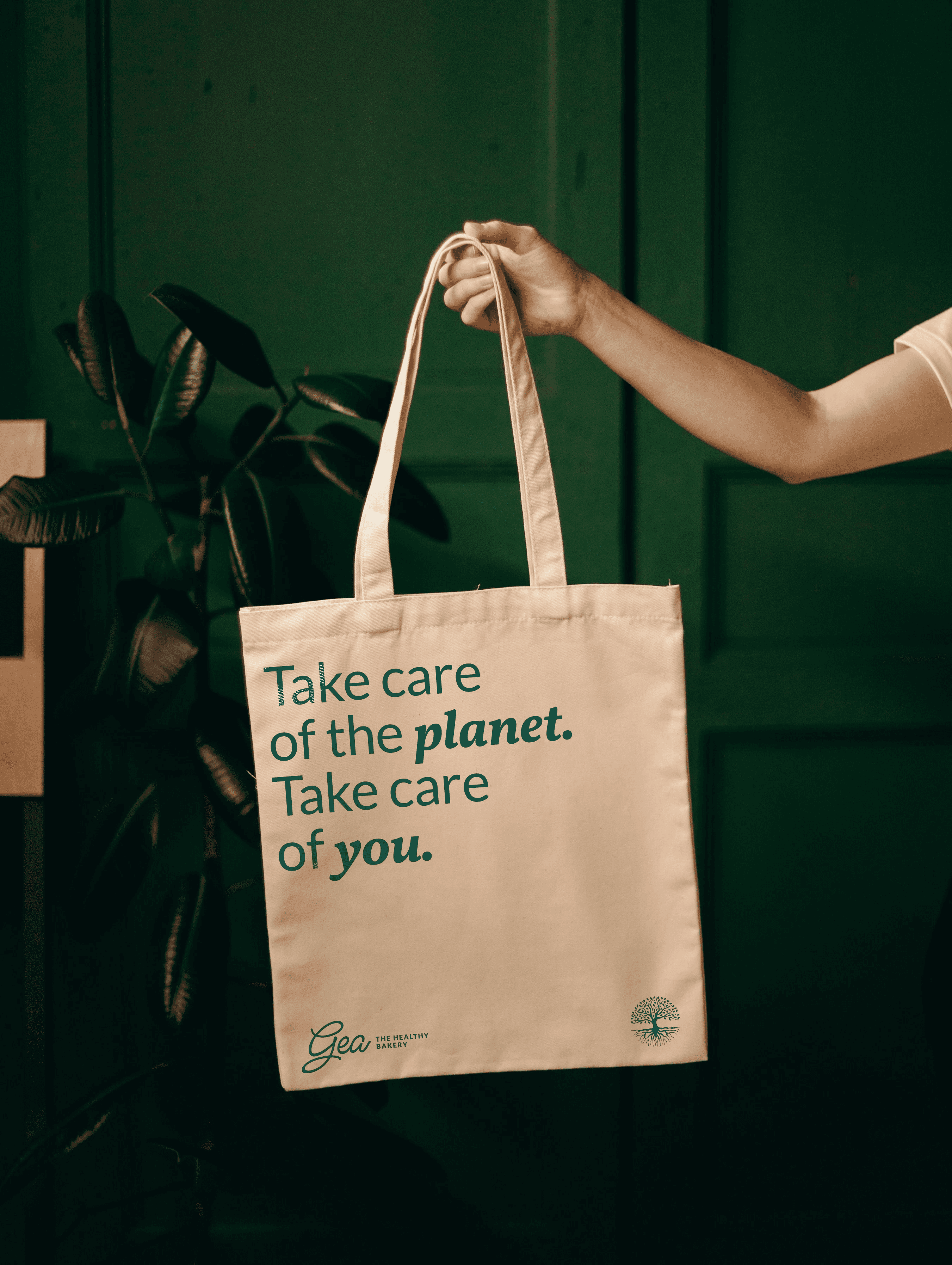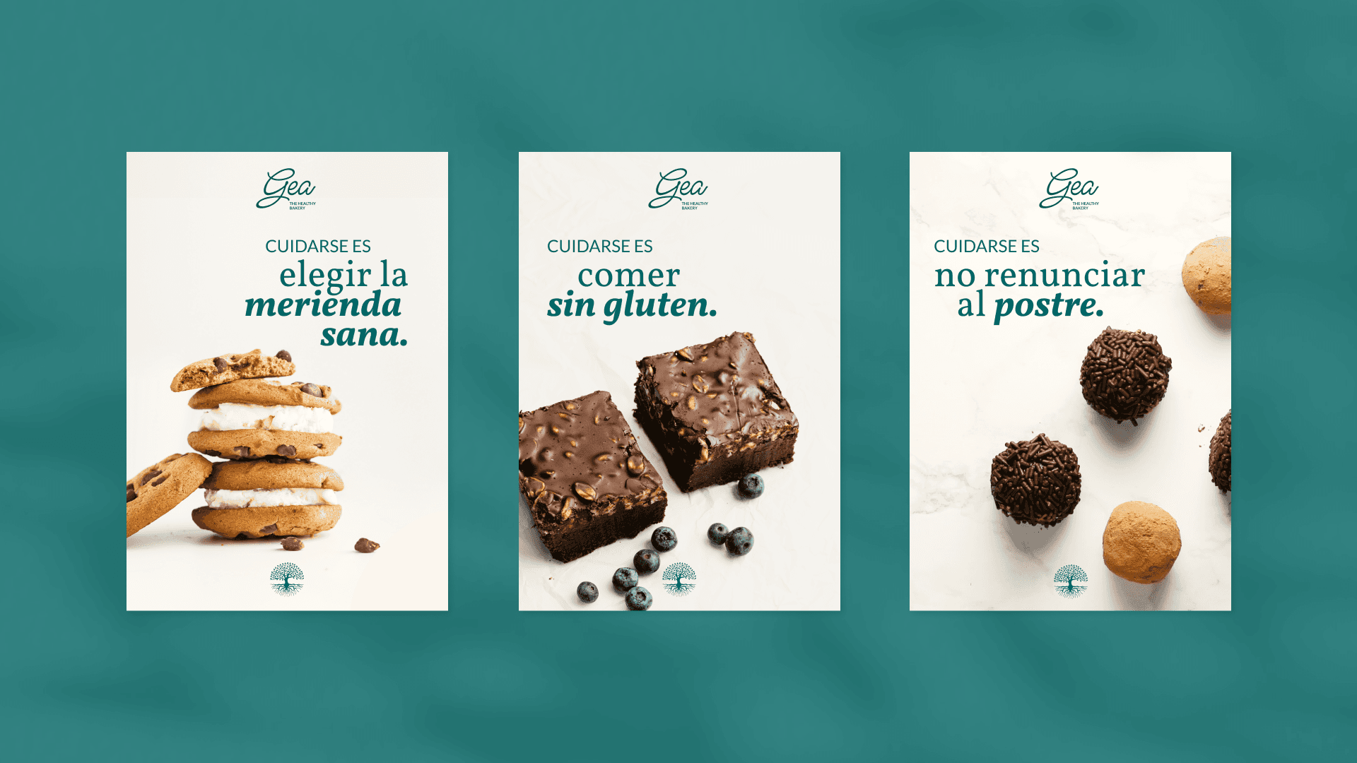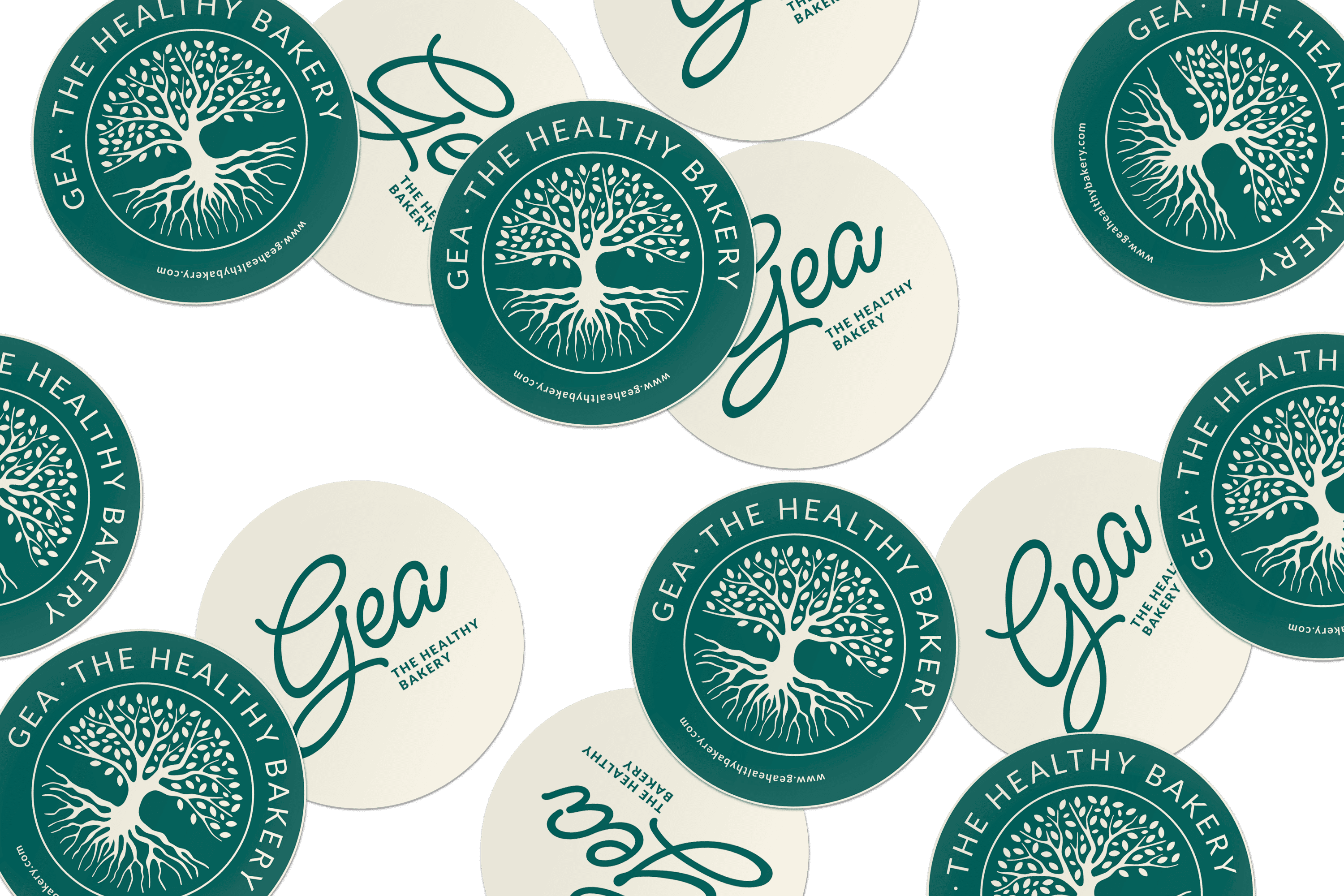 Along with the name "Gea," the tree of life represents the connection between natural products and the earth, reinforcing the idea that these pastries are beneficial for both the body and the mind.